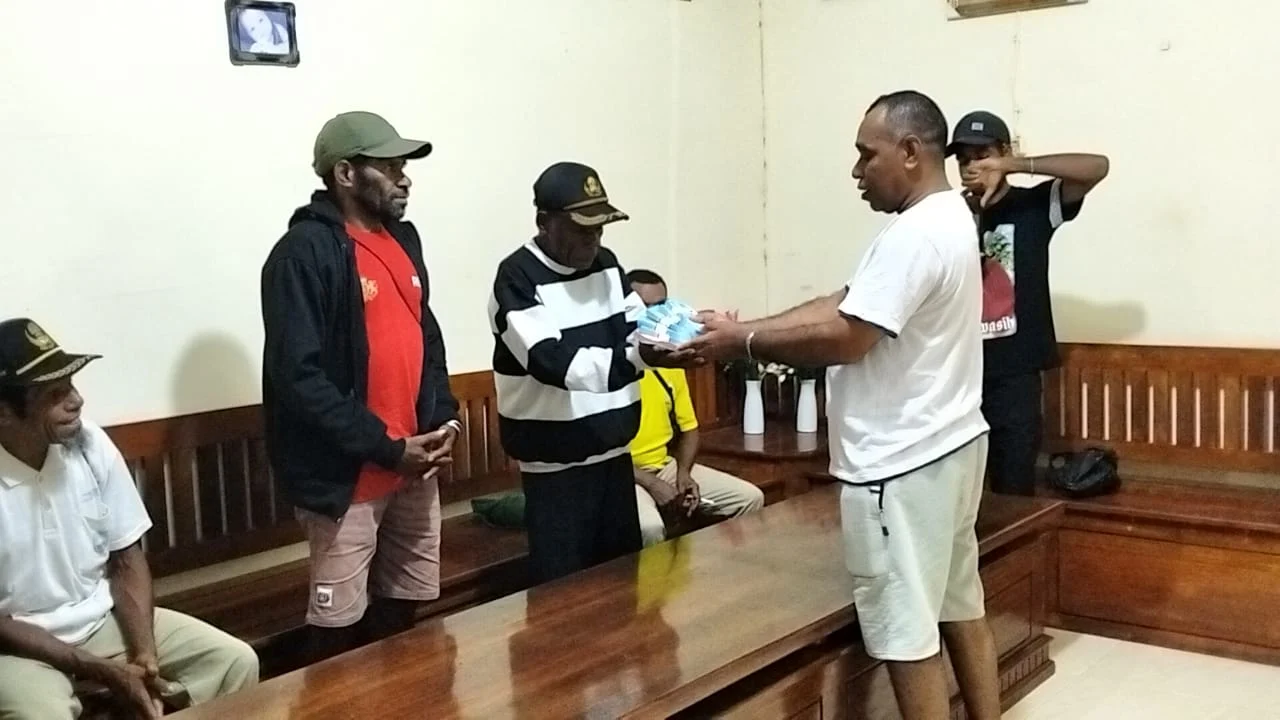 Potretone.com, Sorong Selatan,- Wakil Ketua I DPRD Kabupaten Sorong Selatan, Ali Jahuri, memberikan bingkisan Natal kepada jemaat GKI Imanuel Benawa II, Distrik Kokoda Utara, pada Kamis (12/12/2025).