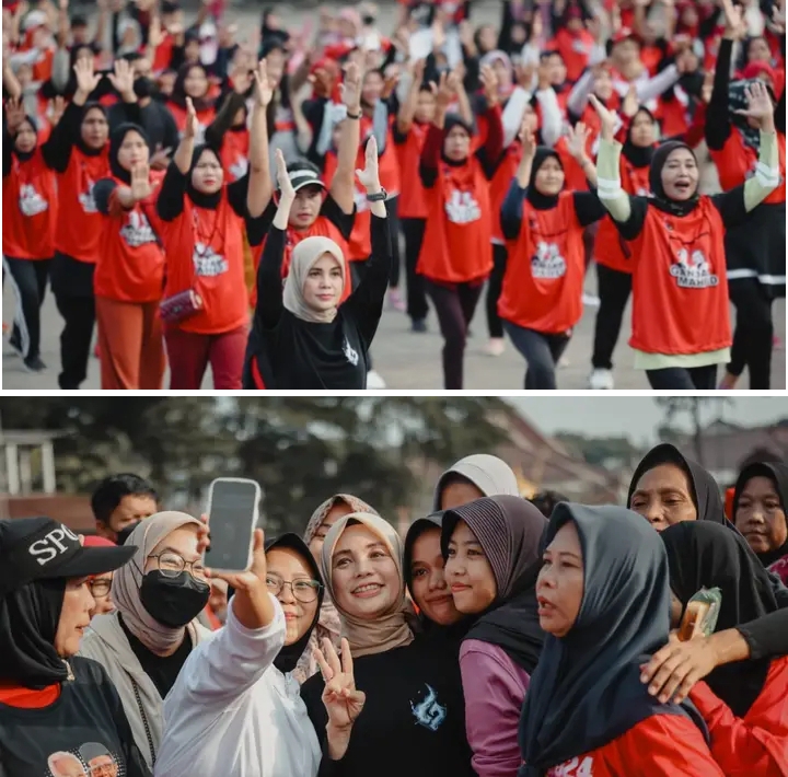 Atikoh kemudian langsung menyapa masyarakat di lapangan. Senam Indonesia Cinta Tanah Air (SICiTa) berlangsung meriah. Atikoh yang bergerak penuh energik memantik semangat para emak-emak yang hadir.