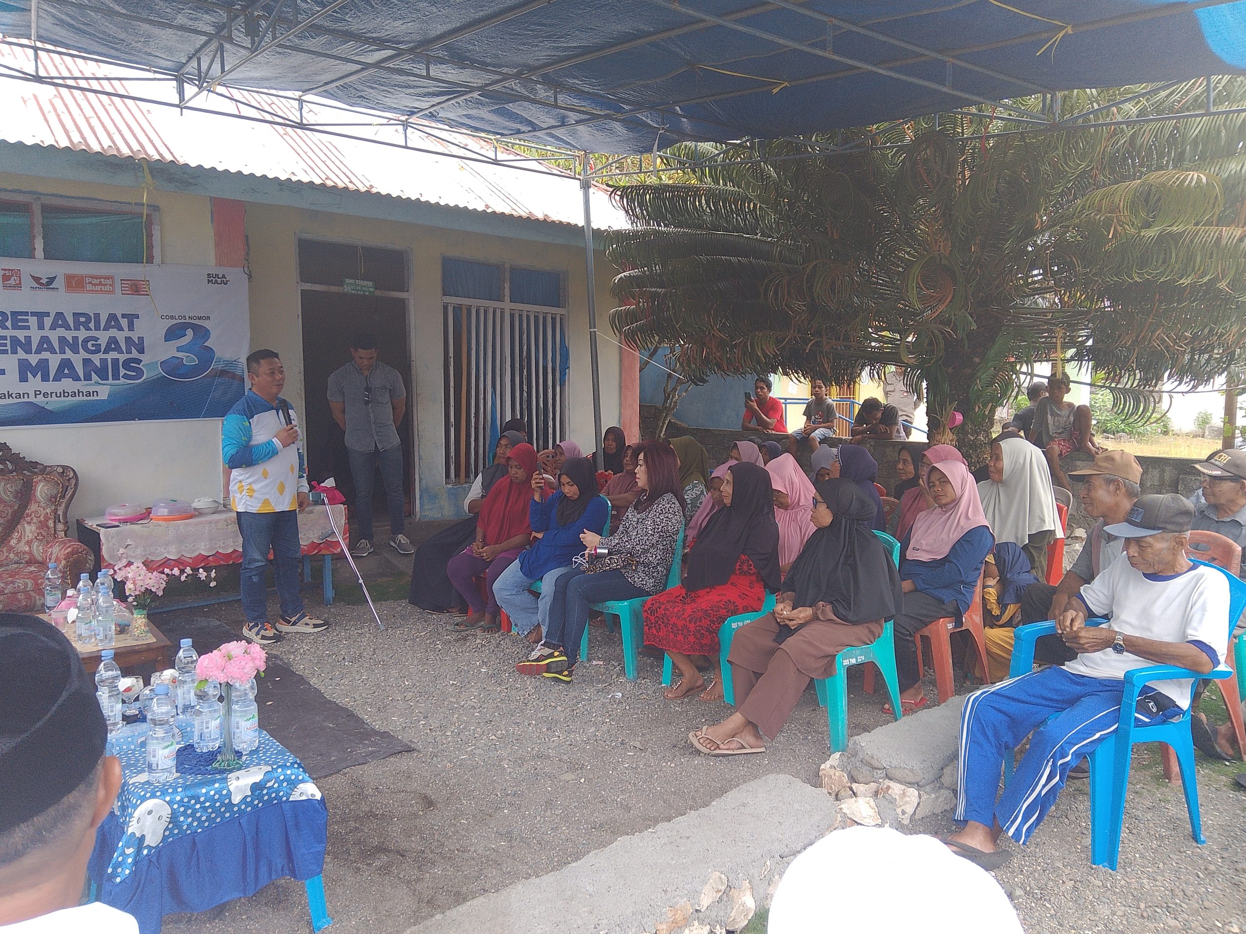 PotretOne.com, Sanana – Blusukan di Desa Waigoiyofa, Kecamatan Sulabesi Timur, Hendrata Thes mengajak warga untuk menyukseskan Pilkada damai tahun 2024. Jumat (1/11).