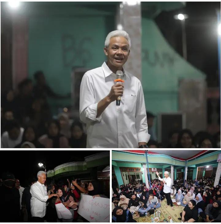 Pantawan PotretOne.com, melalui berita Ganjar Pranowo di akun sosial media beruapa Facebook, Senin, (25/12/2023). Capres nomor urut 3 yang berkegiatan di Solo Raya menyempatkan diri bertemu dengan anak muda Sragen di Bascamp Wiyas Krikilan Sragen pada minggu 24 Desember 2023 malam. Kemudian ratusan anak muda penerima KIP Kuliah itu langsung menyambutnya dengan gegap gempita.