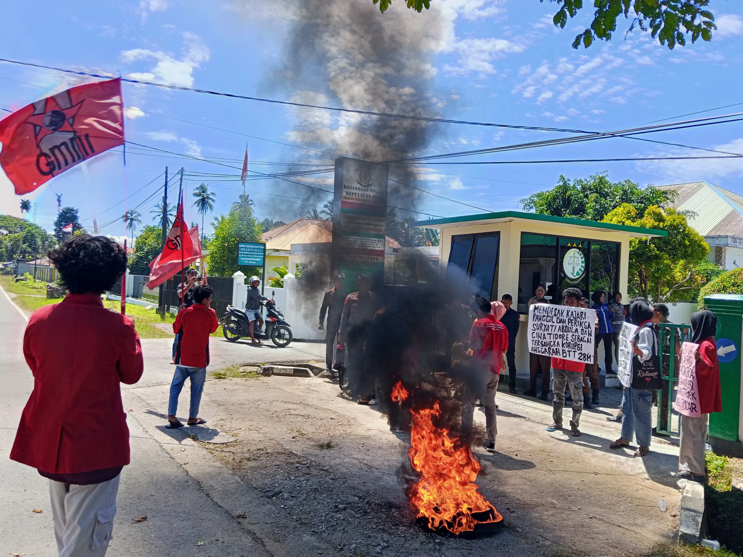 Aksi yang berlangsung di depan kantor Kejaksaan Negeri Kepulauan Sula, puluhan masa mendesak untuk segera menetapkan beberapa oknum yang terlibat kasus korupsi BTT senilai 28 Miliayar.