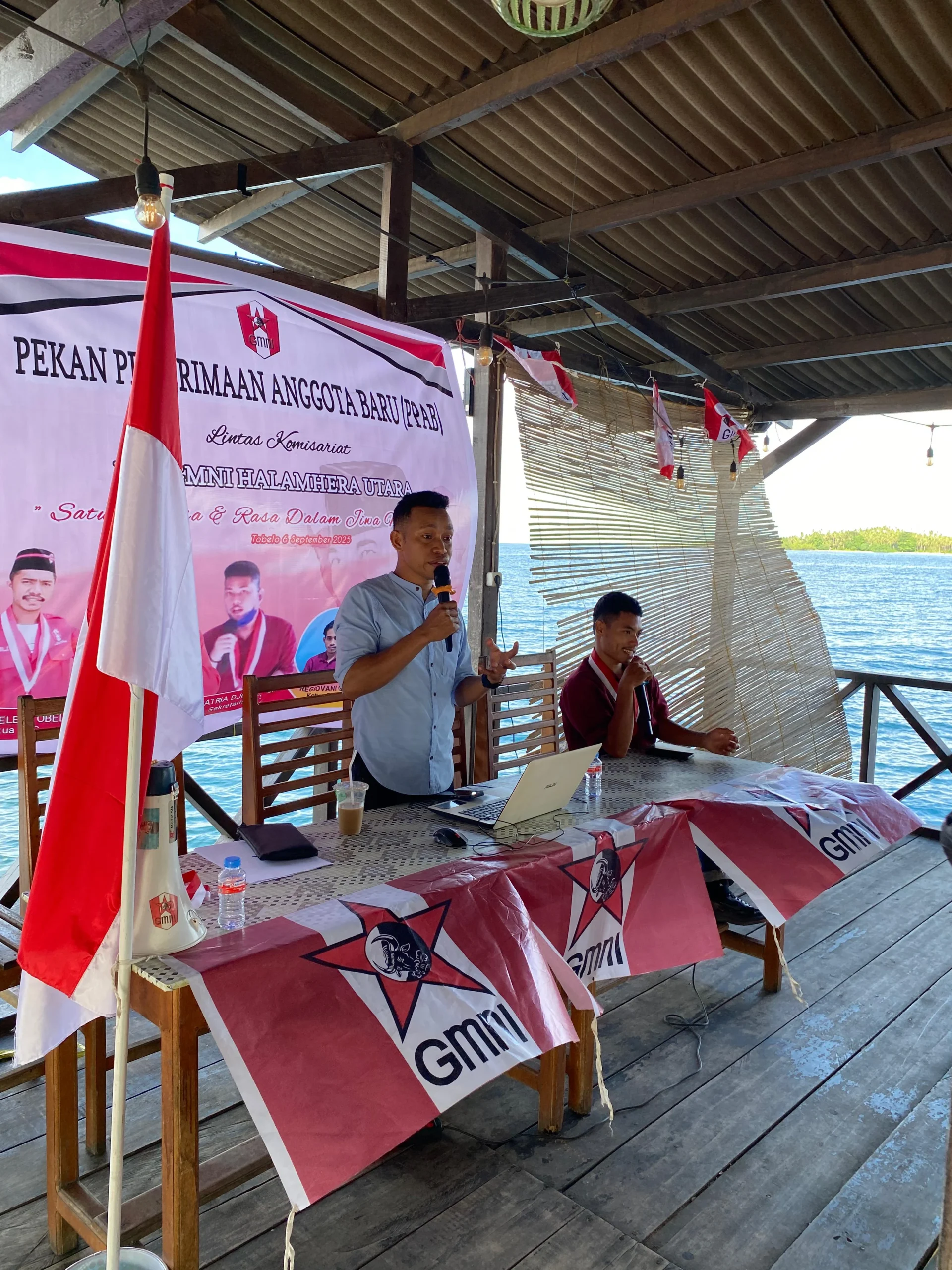 Potretone.com, Halut- Dewan Pimpinan Cabang (DPC) Gerakan Mahasiswa Nasional Indonesia (GMNI) Halmahera Utara, menggelar kegiatan Penerimaan dan Pendidikan Anggota Baru (PPAB) di Pantai Baru Madoto, Desa Lina Ino, Kecamatan Tobelo Tengah, Sabtu, 6/9 2025).