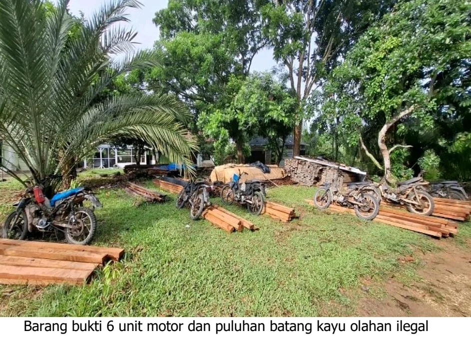 Selain itu, barang bukti berupa 6 unit sepeda motor, 1 unit mesin gergajian (Chainsaw) serta kayu-kayu olahan jenis kayu Balau berbentuk Broti dengan ukuran 6 cm X 12 cm X 3 M telah disita oleh Penyidik dan diamankan di Kantor Balai TNBT.