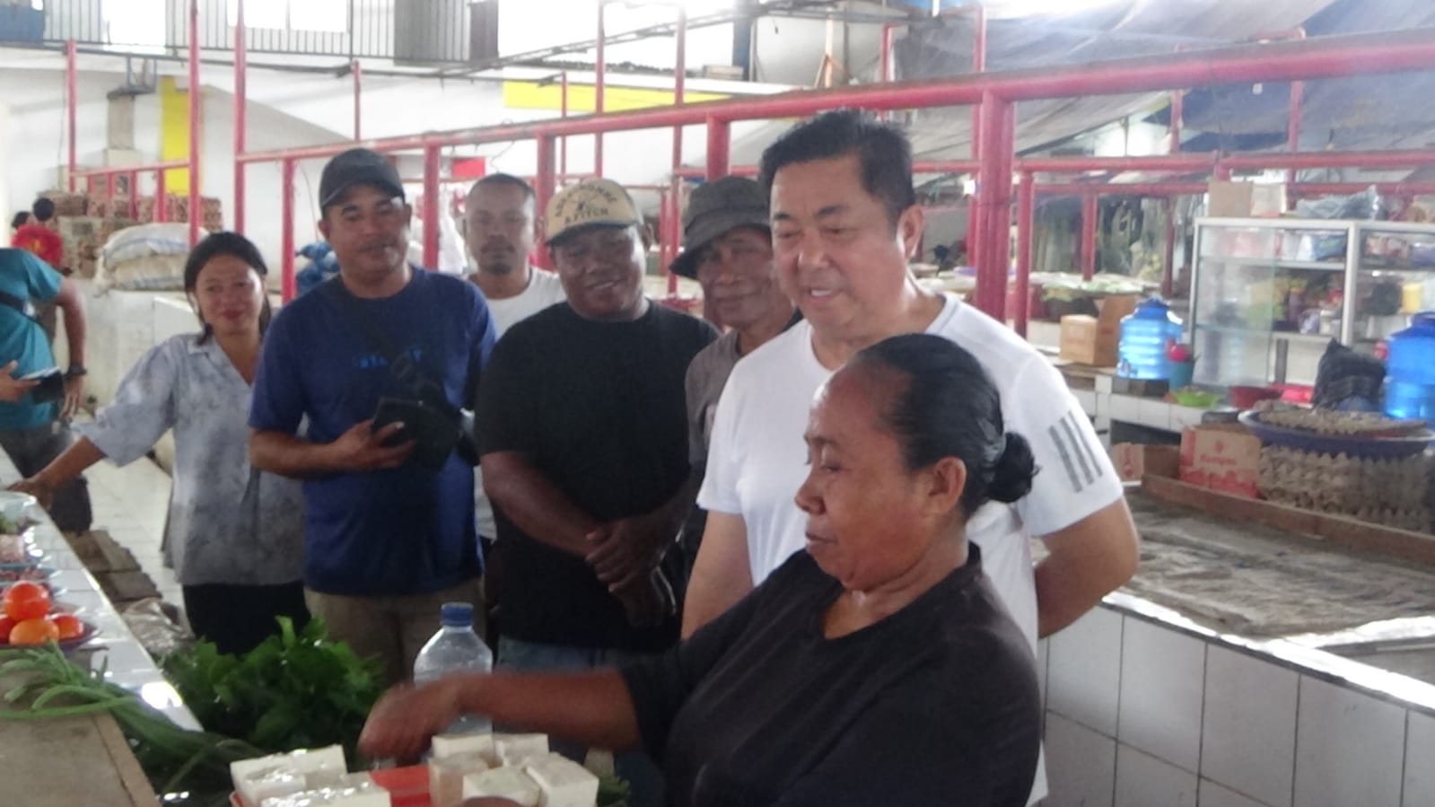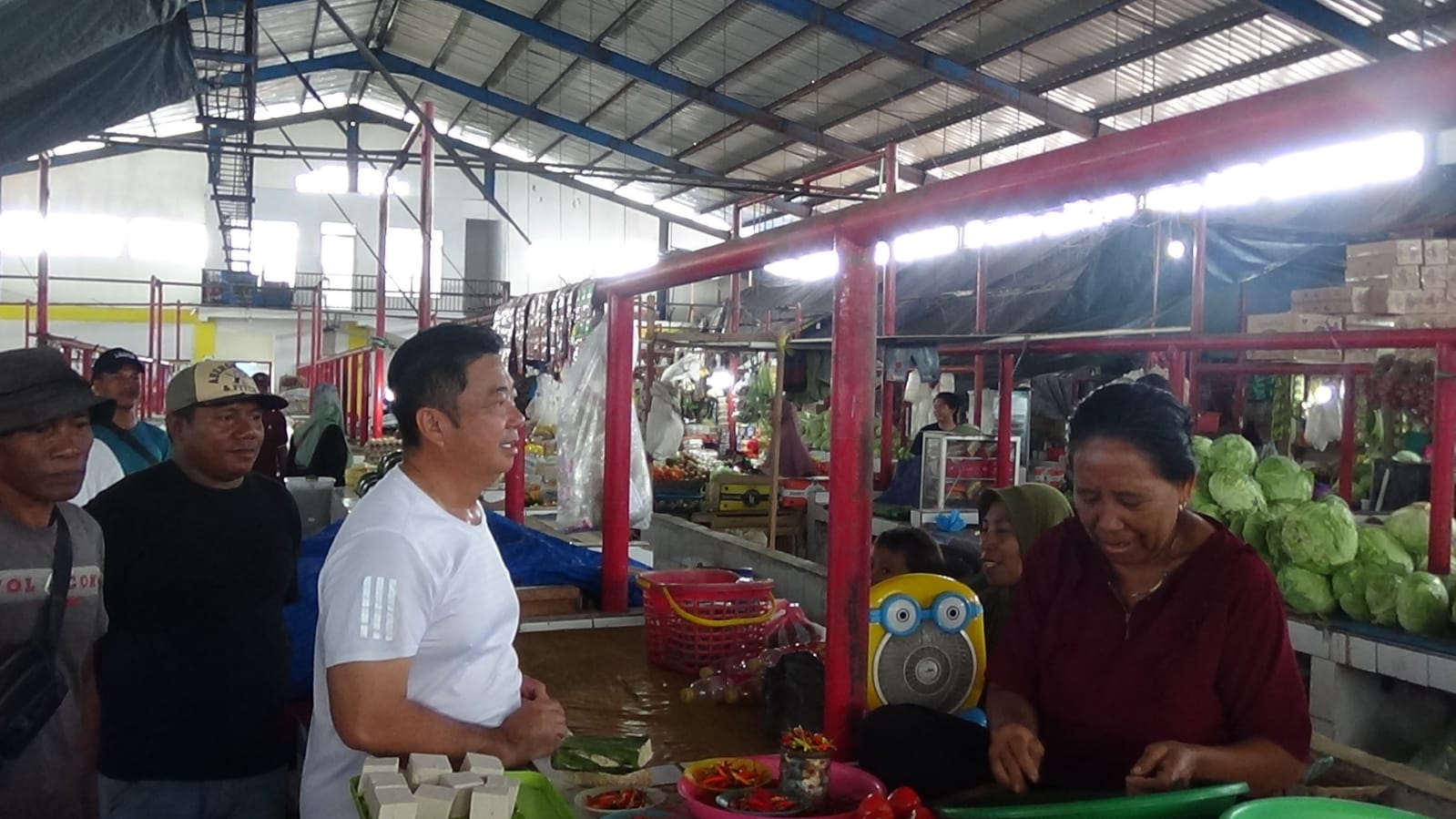 Sontak kegiatan berbelanja Hendrata menjadi perhatian pewarta yang kebetulan melakukan aktivitas yang sama, yakni berbelanja, bedanya sambil berbelanja Hendrata berdialog dengan pedagang di pasar Makdahi.