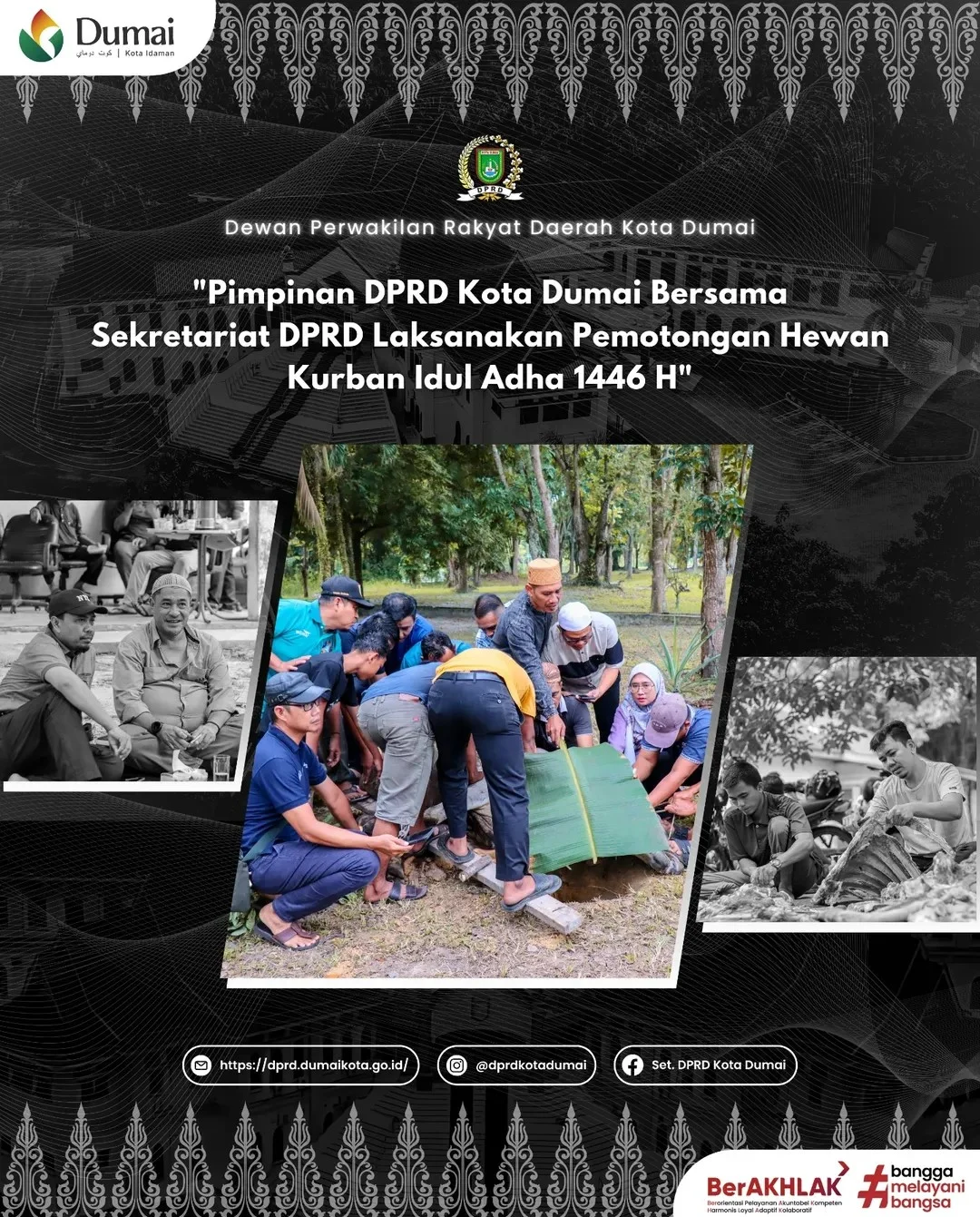 Potretone.com DUMAI – Suasana hangat penuh kebersamaan menyelimuti halaman Kantor DPRD Kota Dumai, Sabtu (7/6/2025). Dalam semangat merayakan Idul Adha 1446 H, Wakil Ketua DPRD Kota Dumai, H. Johannes MP Tetelepta, S.H., M.M., bersama Anggota DPRD Mawardi serta Sekretaris DPRD, Hadiyono, S.Hut., M.Si., memimpin langsung prosesi pemotongan hewan kurban yang digelar oleh Sekretariat DPRD Kota Dumai.