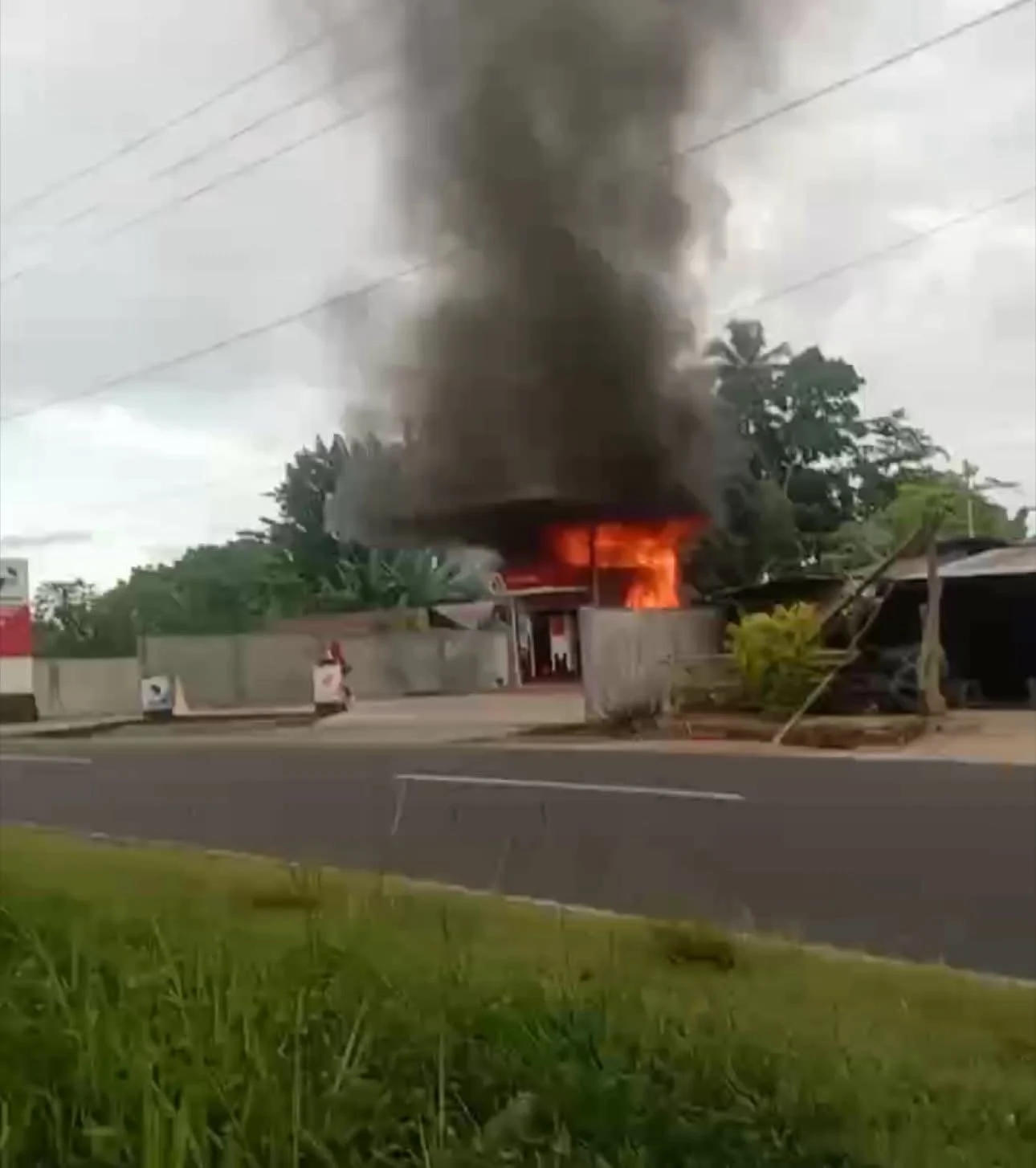 Potretone.com, Halut,- Kebakaran hebat melanda satu unit Pertashop milik CV. Lintas Karya di Desa Pediwang, Kecamatan Kao Utara, pada Senin (8/9/25) sekitar pukul 15.40 WIT.