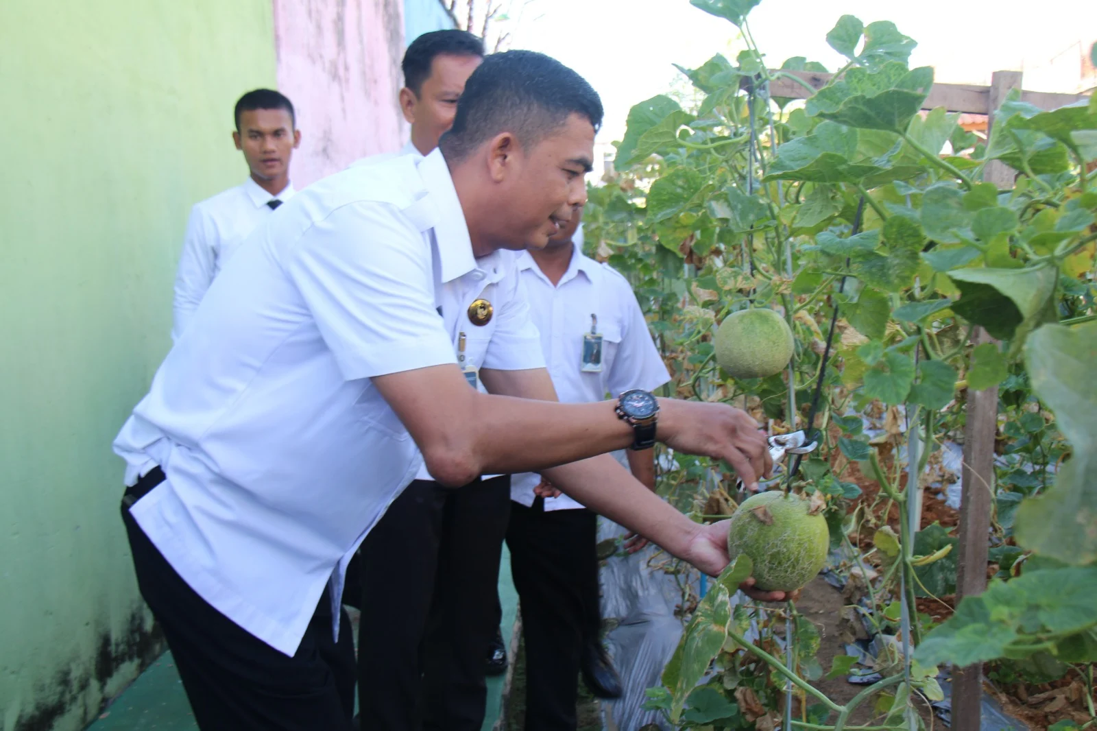 Potretone.com Pekanbaru – Lembaga Pemasyarakatan (Lapas) Kelas IIA Pekanbaru terus tunjukkan komitmen mendukung ketahanan pangan nasional melalui program pembinaan berbasis kemandirian. Komitmen ini ditunjukkan melalui panen 62 kg buah melon yang dilaksanakan di area perkebunan dalam Lapas Pekanbaru pada Rabu (16/07).
