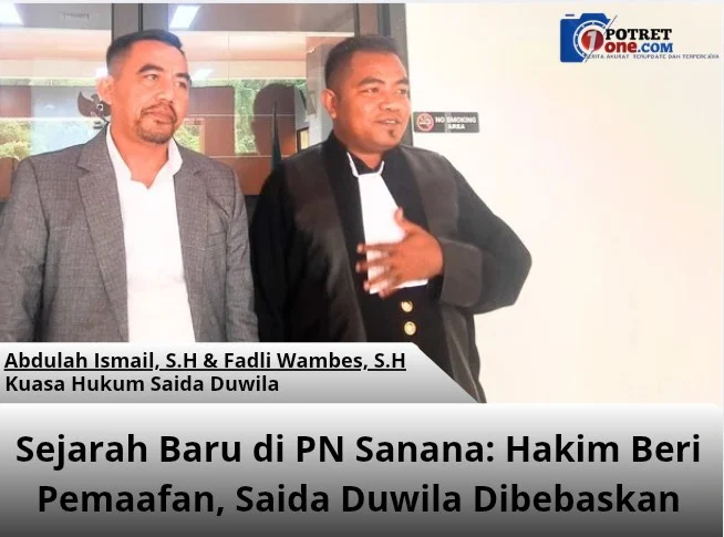 PotretOne.com Sanana,- Pengadilan Negeri (PN) Sanana mencatat sejarah baru dalam dunia peradilan pidana dengan menjatuhkan putusan pemaafan hakim terhadap terdakwa Saida Duwila, dalam sidang pembacaan putusan yang digelar di Pengadilan Sanana pada Selasa, (20/1/2026.