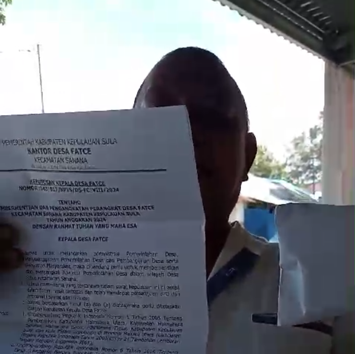 Potretone.com, Sanana (Malut) – Malik Drakel biasa disapa akrabnya Pa Le, Kepala Dusun III Desa Fatce Kecamatan Sanana, Kabupaten Kepulauan Sula, baru saja menerima surat pemberhentian dari jabatannya.