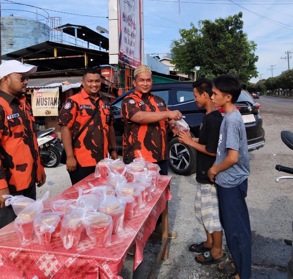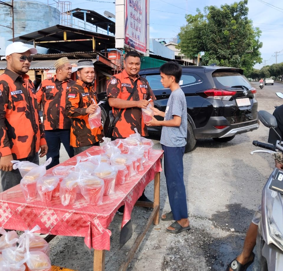 Berbagi takjil di laksanakan di jalan Datuk Laksamana tepatnya didepan kantor PAC PP Dumai Kota.