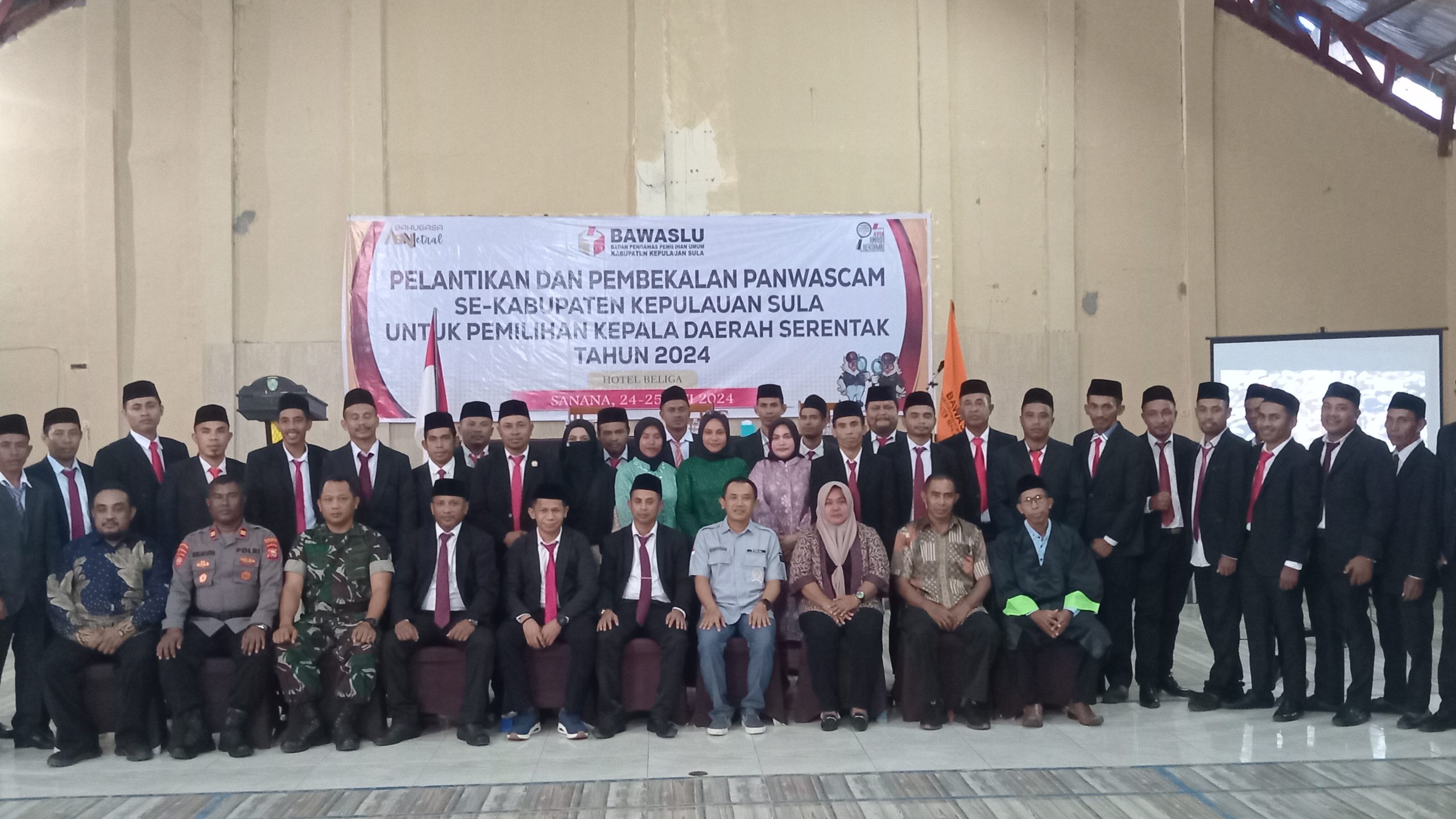 Potretone.com, Sanana (Malut) – Sebanyak 36 orang Pengawas Pemilihan Umum Kecamat se-Kabupaten Kepulauan Sula dilantik. Pelantikan dan pengbilan sumpah/janji panwascam se-Kabupaten Kepulauan Sula, dalam rangka Pemilihan Kepala Daerah (Pilkada) serentak tahun 2024 yang dilaksanakan di beliga hotel Desa Fagudu Kec. Sanana, Jumat (24/5/24).