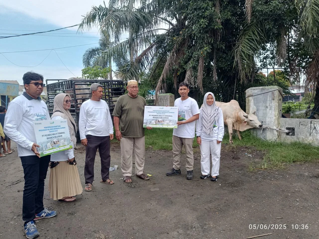 Potretone.com Medan – Juni 2025 — PT Pelindo Multi Terminal (SPMT) Grup, Subholding PT Pelabuhan Indonesia (Persero) yang bergerak di bidang terminal nonpetikemas, kembali menyalurkan bantuan hewan qurban kepada masyarakat dalam rangka perayaan Hari Raya Iduladha 1446 H. Melalui program Tanggung Jawab Sosial dan Lingkungan (TJSL) bertajuk “Pelindo Berbagi Qurban 2025”, sebanyak 90 hewan qurban berupa 77 ekor sapi dan 13 ekor kambing yang disalurkan ke berbagai wilayah kerja Pelindo Multi Terminal Grup yang tersebar di seluruh Indonesia.