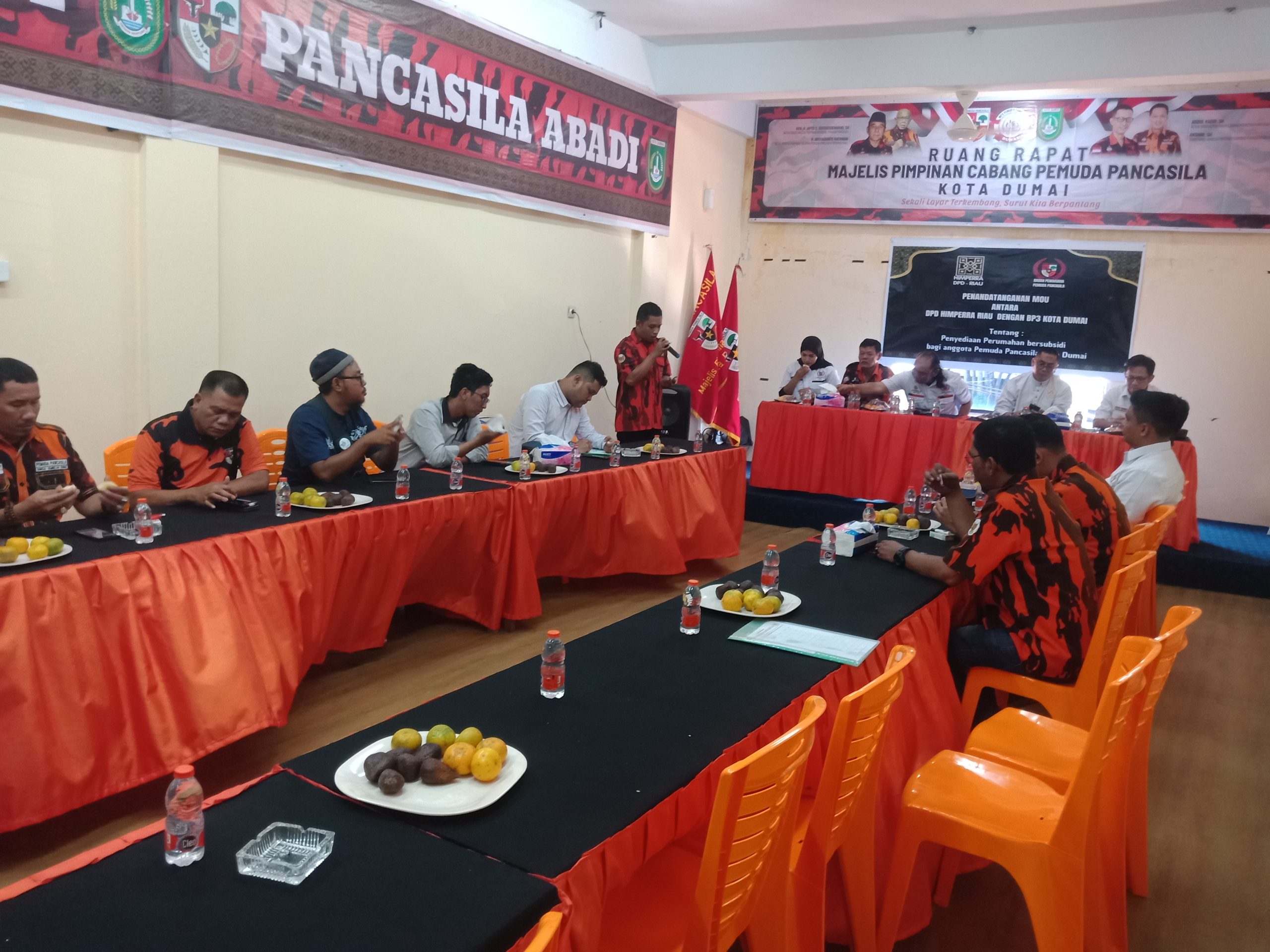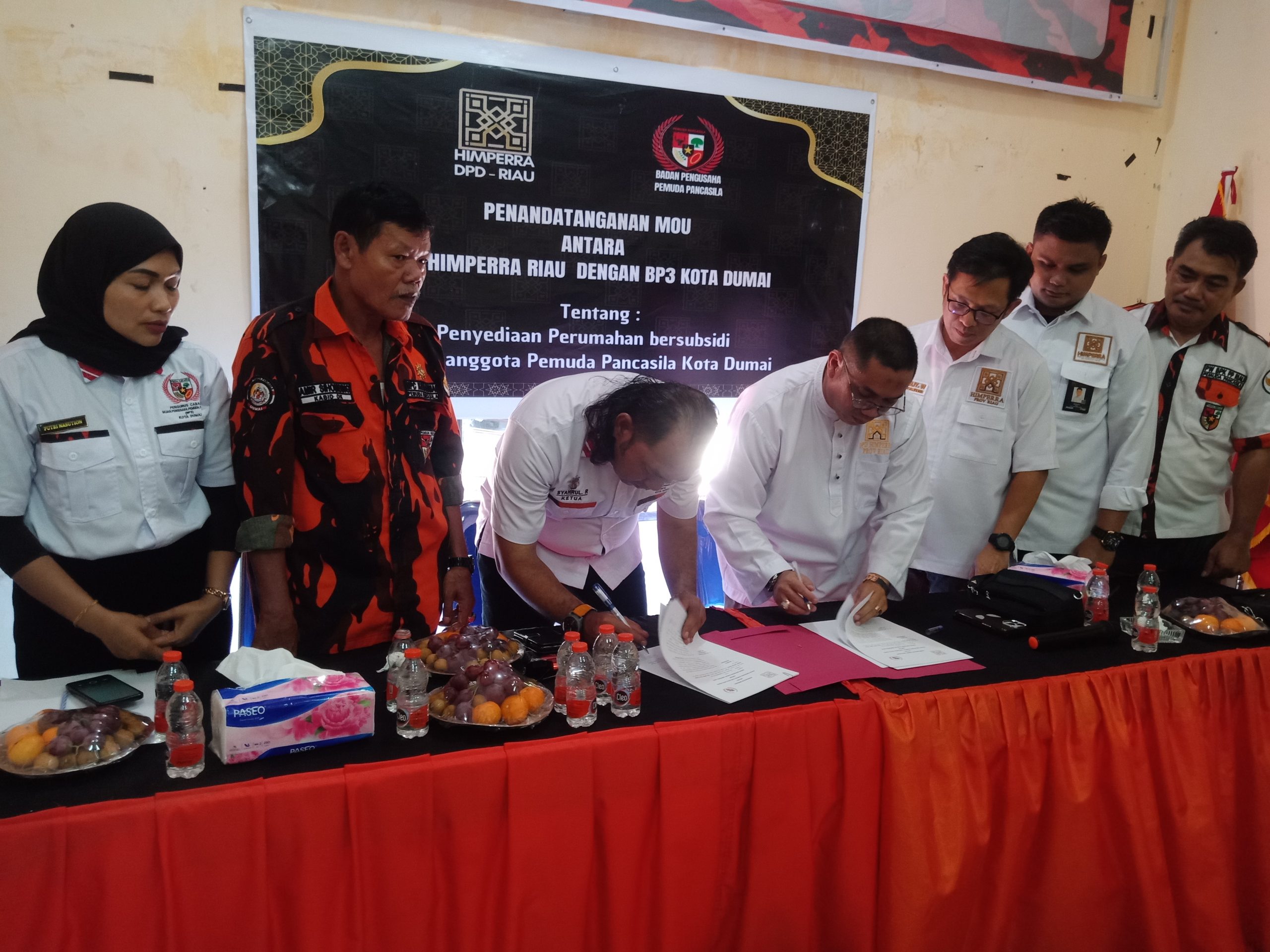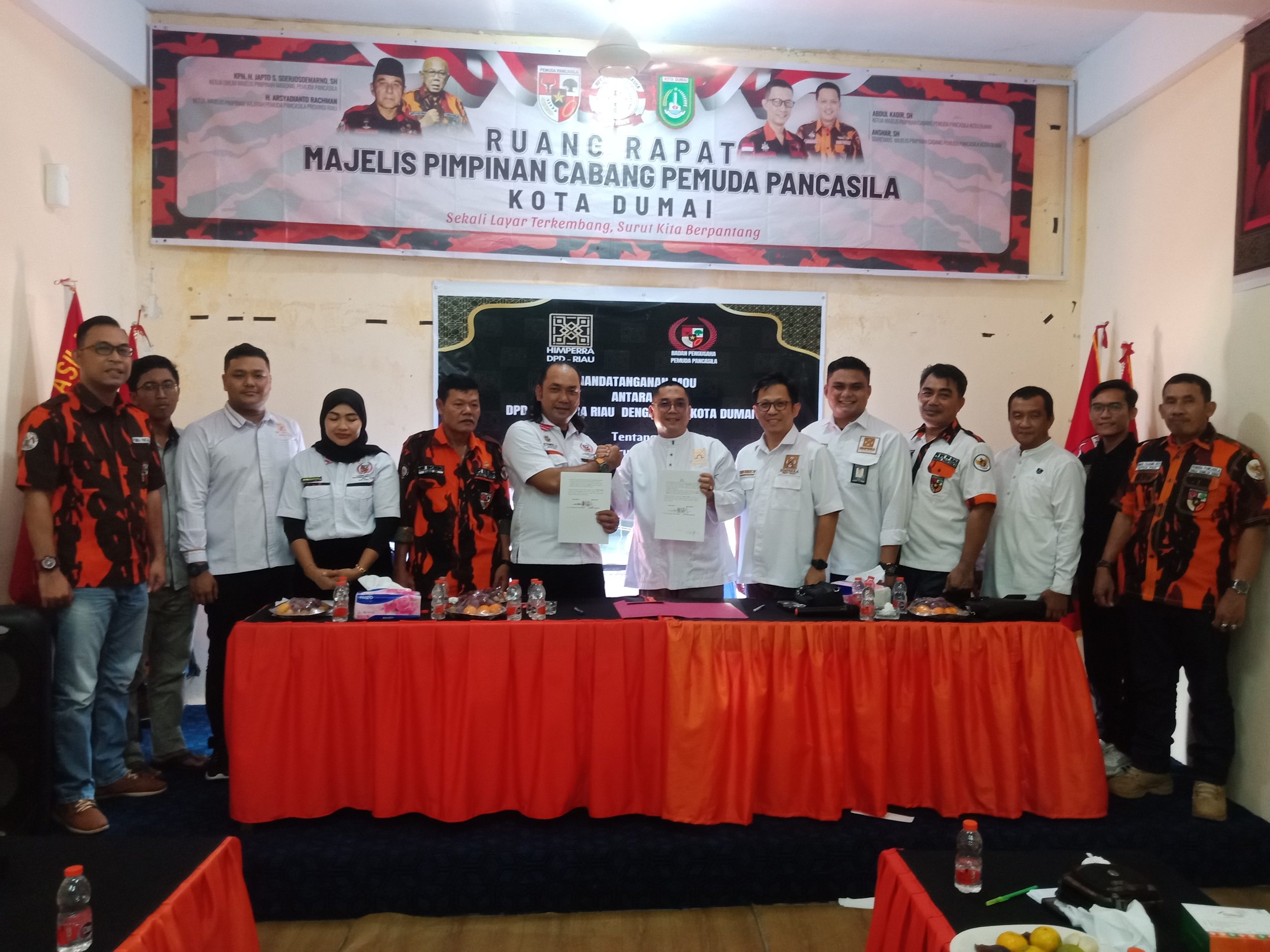 Potretone.com Dumai – Acara penandatanganan MOU Badan Pengusaha Pemuda Pancasila Kota Dumai jalin kerjasama dengan DPD HIMPERRA Riau ,yang dilaksanakan dikantor BP3 Kota Dumai lantai dua Gedung MPC Kota Dumai jalan jend Sudirman.(3/05/2024)