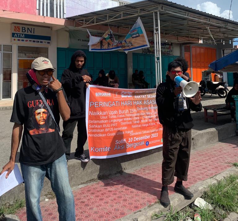 PotretOne.com, Malut – Relawan Ali Akbar Muhammad, menggelar aksi unjuk rasa dalam rangka memperingati Hari Hak Asasi Manusia (HAM) se-Dunia, tepat pada tanggal 10 Desember 2023.