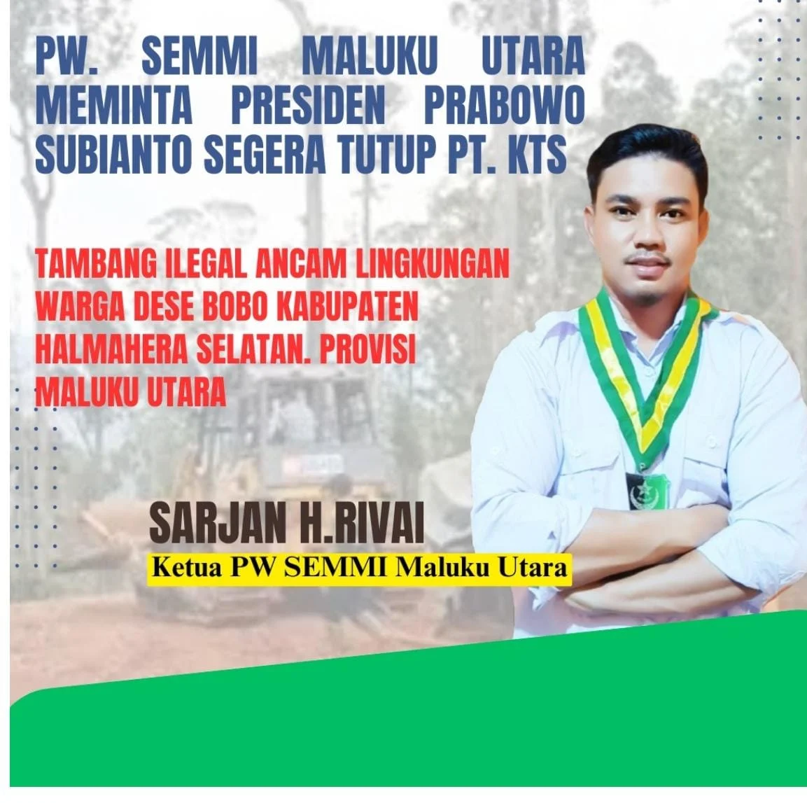 Potreone.com Malut,- Pengurus Wilayah Serikat Mahasiswa Muslimin Indonesia (PW SEMMI) Maluku Utara mendesak Presiden RI, Prabowo Subianto, untuk segera mencabut izin dan menghentikan seluruh aktivitas pertambangan PT Karya Tambang Sentosa (KTS), yang sebelumnya bernama PT Intim Mining Sentosa (IMS), di Desa Bobo, Kecamatan Obi Selatan, Kabupaten Halmahera Selatan, Maluku Utara.
