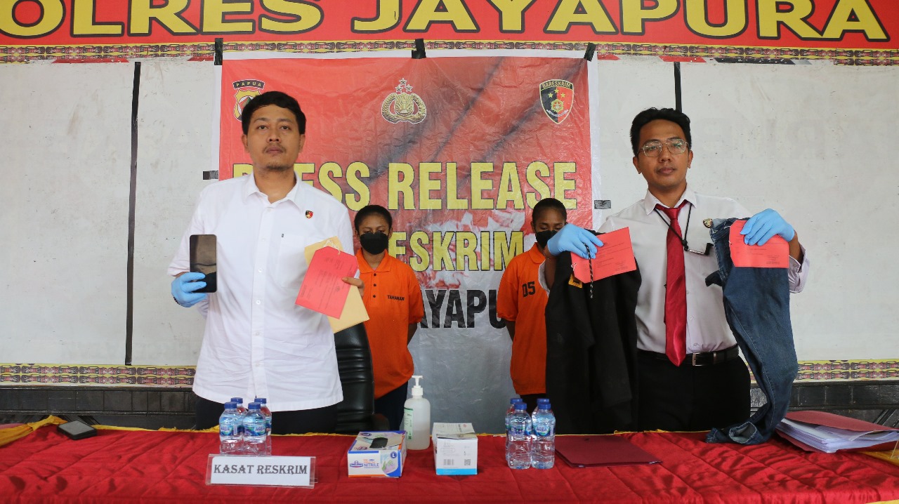 Potretone.com Jayapura – Press release tindak pidana kekerasan terhadap anak yang berlangsung di Aula Obhe Reay May Polres Jayapura. Senin, 29/04 sore.